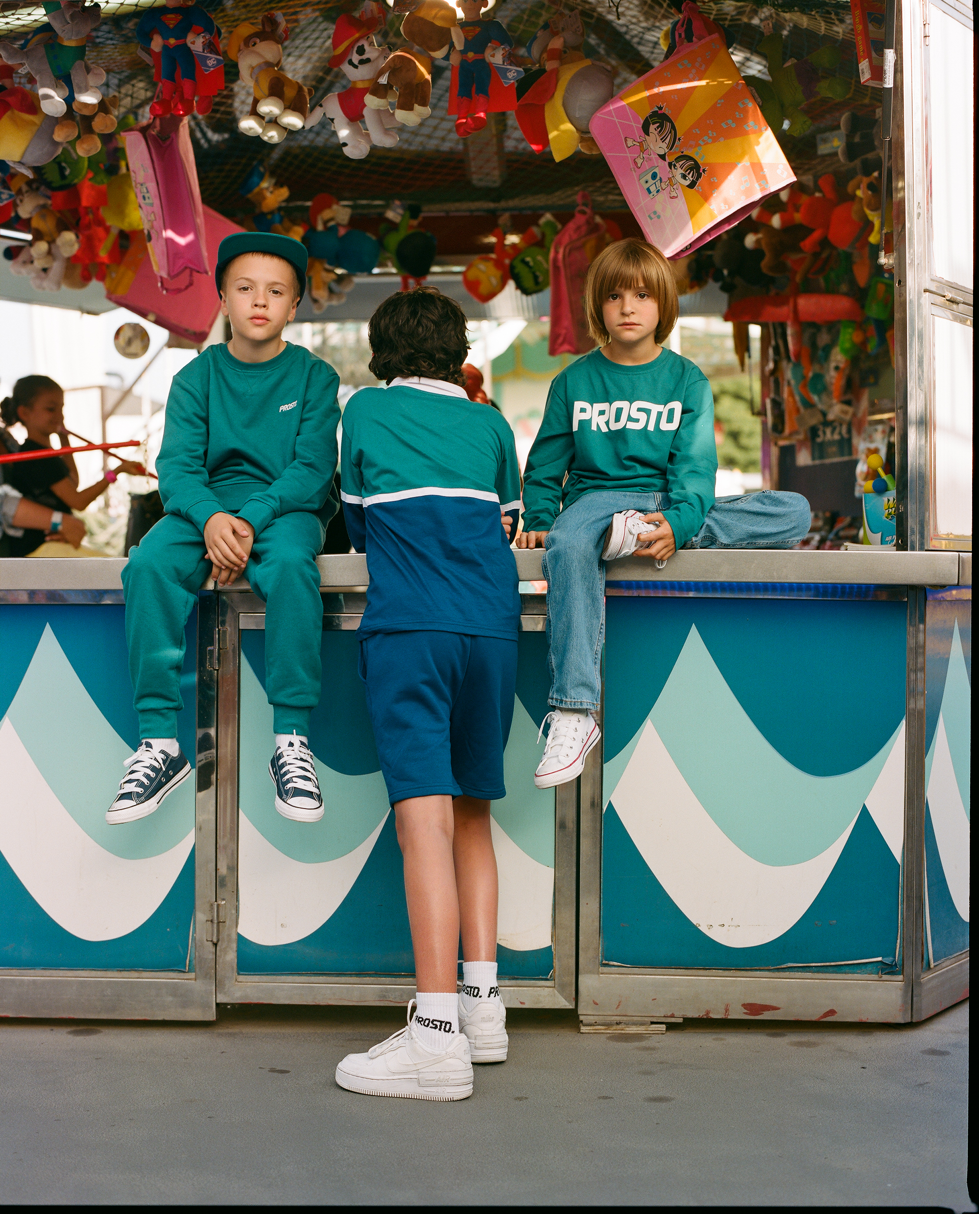Wiosenno-letnia kolekcja Prosto Kids bazuje na kilku kolorach: granatowym, morskim, fioletowym i żółtym. Nawiązują do beztroskich letnich dni, kojarzą się z plażą, lodami i watą cukrową. Kolekcja obfituje w to w czym Prosto jest najlepsze: wygodne dresy, miękkie bluzy i koszulki z nadrukami. Wszystko w klimacie wesołego miasteczka z lat 90.