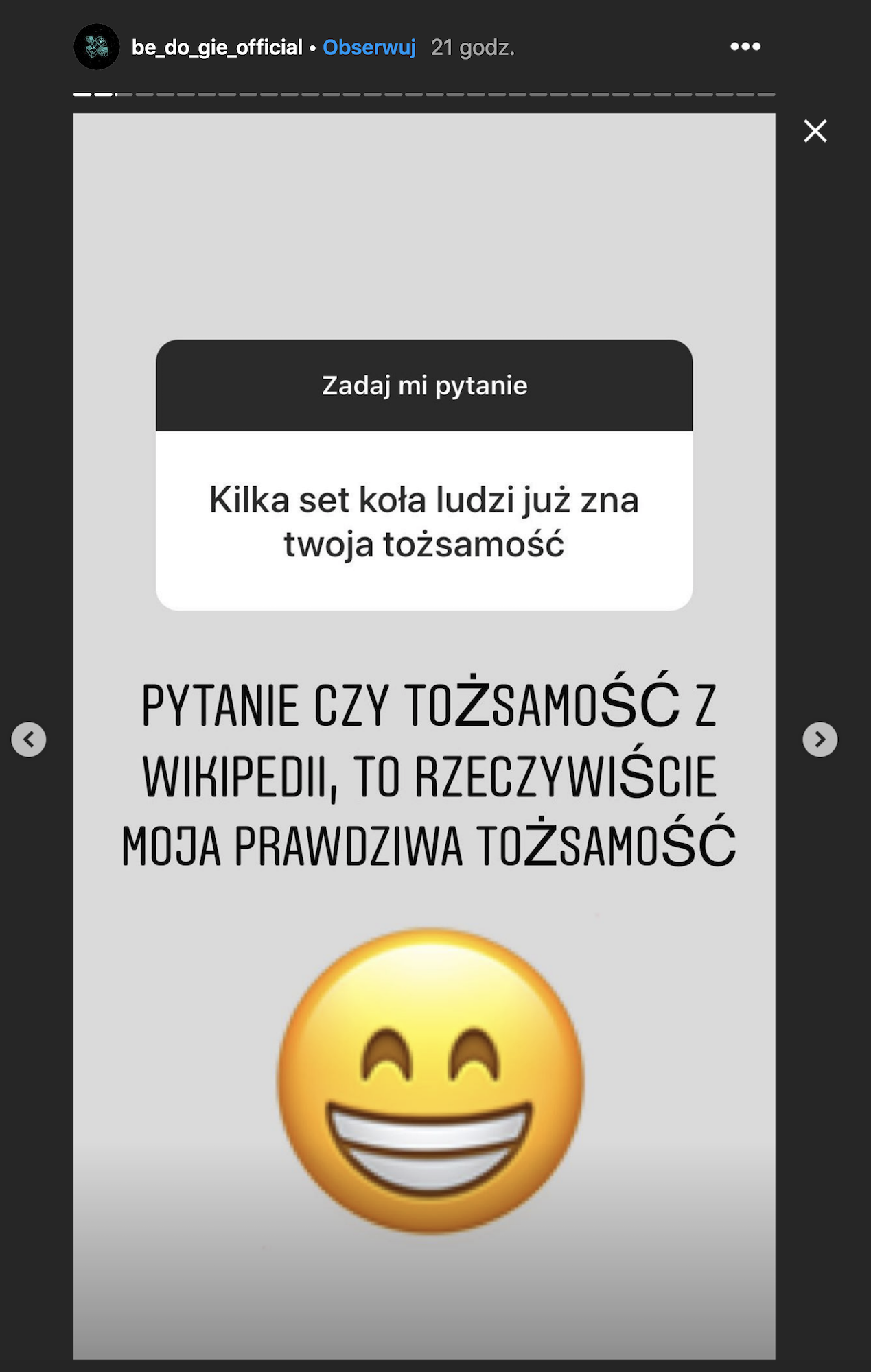 – Pytanie czy tożsamość z wikipedii, to rzeczywiście moja prawdziwa tożsamość:-))