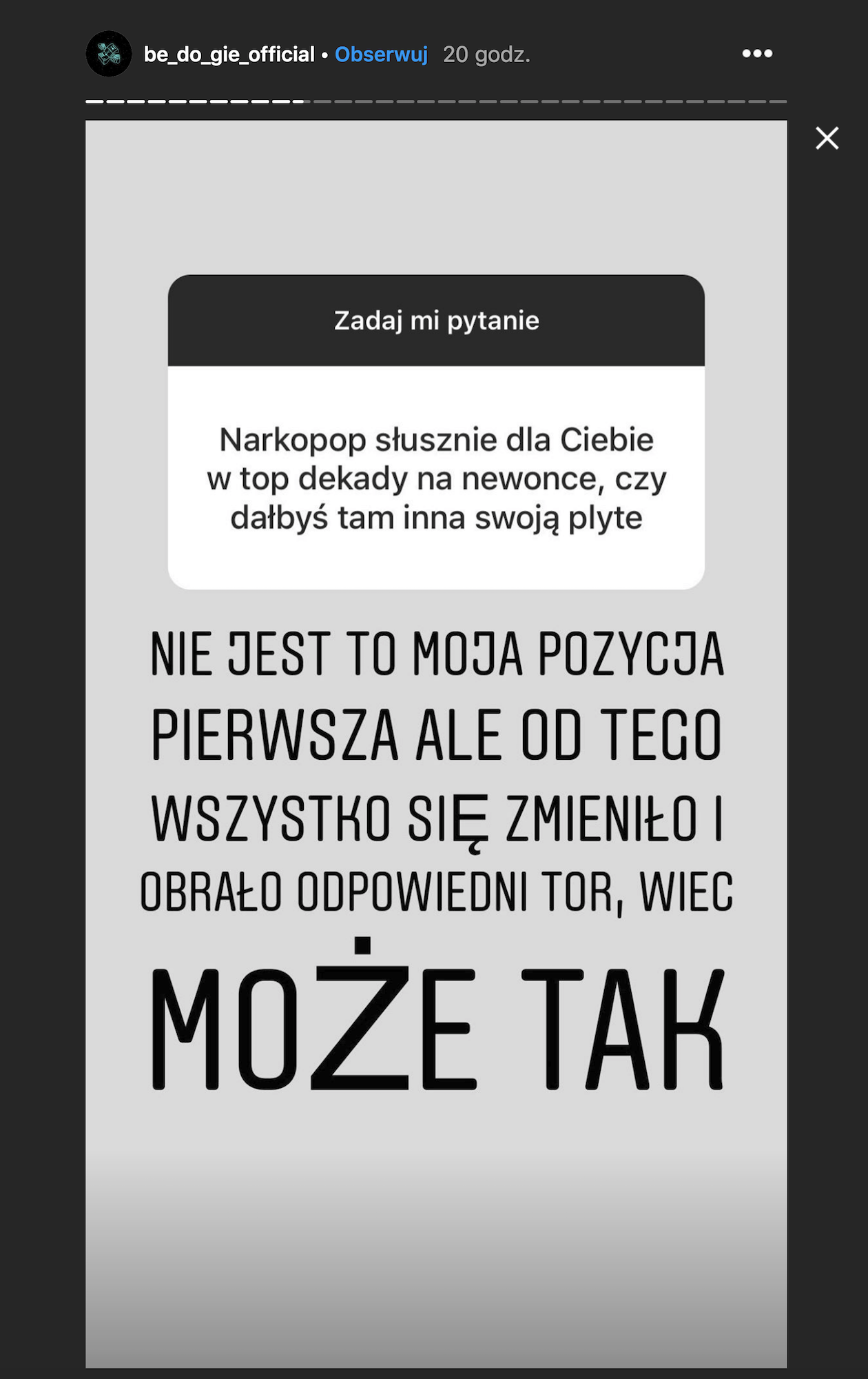 Narkopop słusznie dla ciebie w TOP dekady na newonce, czy dałbyś tam inną swoją płytę?