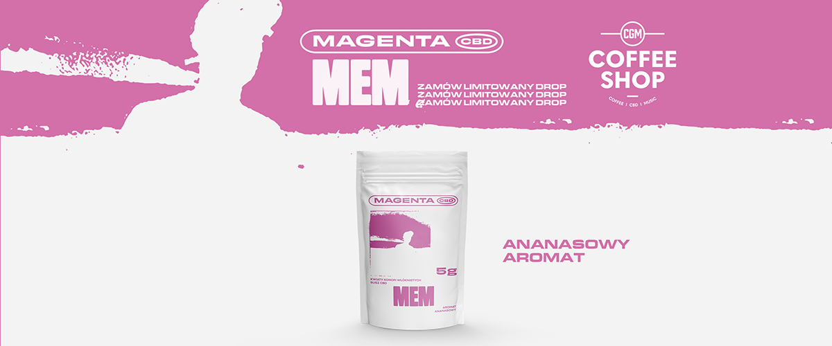 MEM to nowy susz w ofercie MAGENTA CBD, który przypominać będzie zbliżające się ku końcowi wakacje. Jego aromat ma kojarzyć się z letnimi, beztroskimi dniami i nocami. Razem z Instagramowymi memami, którymi ostatnio profil MAGENTA CBD zasypał odbiorców, ma dawać użytkownikom błogi uśmiech i rozluźnienie. Czasami warto odpocząć, bo przecież w końcu „całe życie to MEM”. Kwiaty konopi włóknistych o intensywnie ananasowym aromacie zostały zapakowane w specjalnie zaprojektowany doypack, którego desing nawiązuje do ostatniego teledysku Pezet pt. „Mem”. Susz dostępny jest w naszym sklepie www.cgmcoffeeshop.pl jednorazowo, nie będzie uzupełniany.